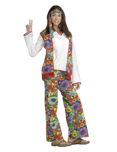 If you remember the 60's you weren't there, so the time is now to go back and live them again in this three-piece hippie dippie woman's costume, psychedelic patterned headband, vest, and pants, vest is attached to shirt for ease of wear, great for parties, theme day, role playing, and halloween, look to forum for more themed accessories to add to the look, look to forum novelties for all of your halloween, luau, christmas, mardi gras, and st, patrick's day supplies, if it's fun, forum has it