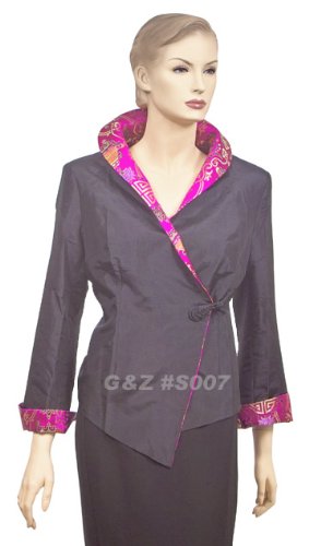 Item #S007. Fashion jacket with Asian brocade collar.Mandarin collar, 1 front frog button close and 1 tie-close strap inside, fully lined inside. Without pockets.SIZES - Asian sizes run about 1 to 1.5 size smaller than American sizes.**SIZE L:MAKE SURE YOU ARE GETTING THE RIGHT SIZE TO AVOID RETURN.